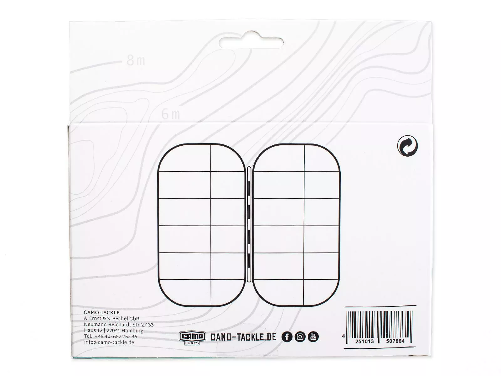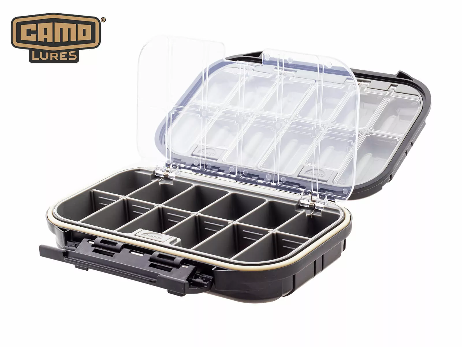 Haken, Perlen, Stopper, Weights, Wirbel & Co - alle Kleinteile, die zum Finesse-Fischen nötig sind, finden in dieser praktischen Box ein sicheres Plätzchen. Die CAMO Lures Finesse Tackle Box TBX-200 wird aus schlagfestem Kunststoff gefertigt und verfügt über eine robuste, einhändig bedienbare Schließe sowie eine umlaufende Gummidichtung gegen das Eindringen von Wasser. Die Fächer im Innenraum der durchdachten Box werden nochmals von exakt eingepassten Klarsichtdeckeln verschlossen, die sich dank Federmechanismus auf Knopfdruck öffnen. Hier kommt kein noch so kleines Zubehörteilchen versehentlich raus! Für Ordnung sorgen insgesamt 12 flache und 12 etwas tiefere Fächer. Sie sind jeweils mittig durch eine herausnehmbare Trennwand unterteilt, können daher nach Bedarf auf doppelte Länge vergrößert werden. Abgerundete Ecken erleichtern die Entnahme kleiner Teile.