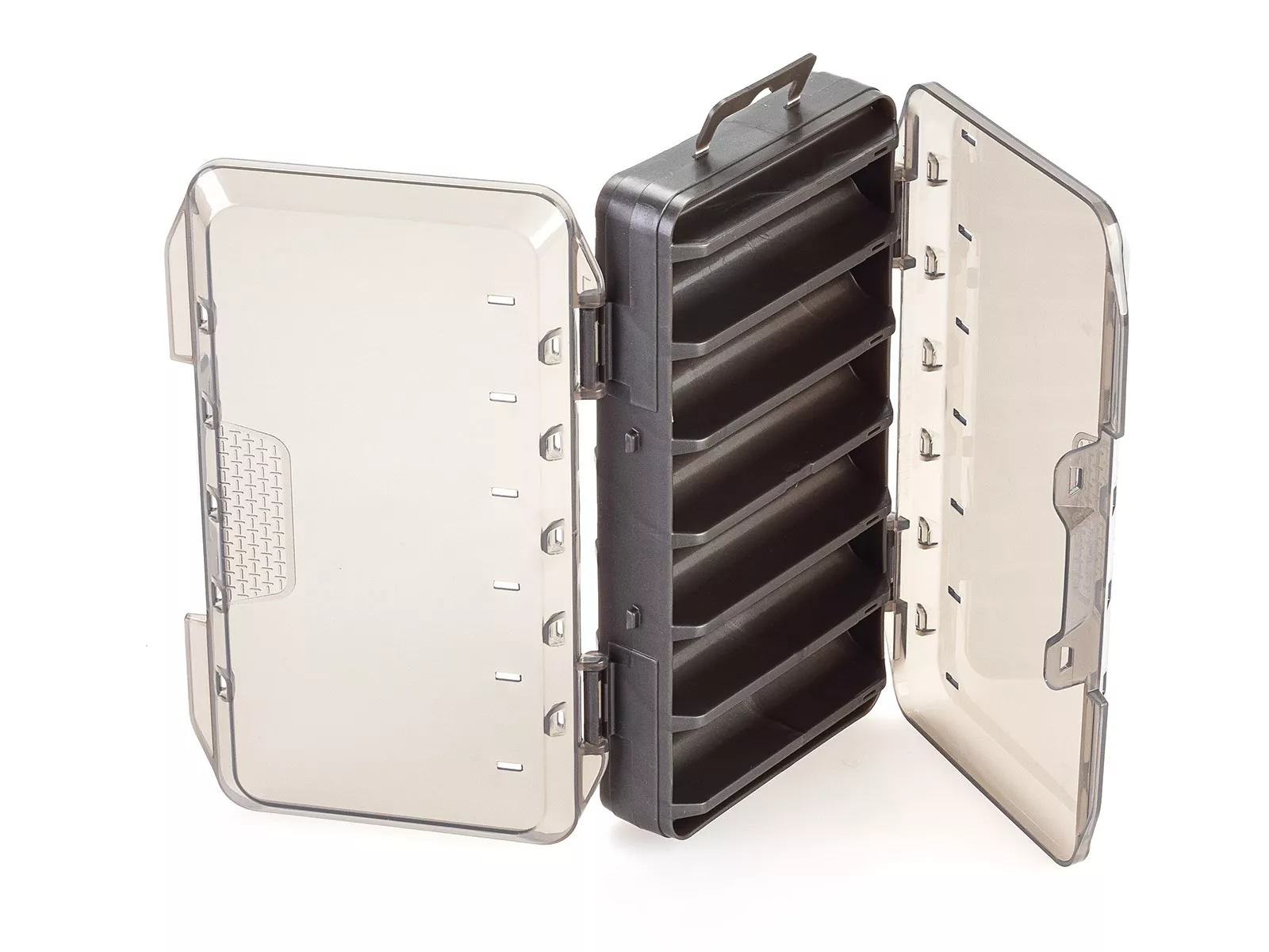 Die CAMO Lures Hardbait Box Small bietet Platz für 13 kleine Hardbaits (max. 8 cm Länge), die alle Platz in ihrem eigenen Fach finden. Die Deckel sind mit kleinen Lüftungsöffnungen versehen, so dass die Wobbler problemlos in der Box trocknen. Die CAMO Lures Hardbait Box Small ist praktisch, um am Wasser eine Auswahl kleiner Hardbaits immer griffbereit zu haben!