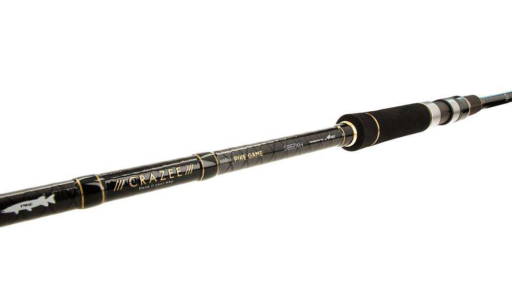 A-Tec Crazee Pike Game S862X - zweiteilige, 2,60 m lange Hechtrute mit 21 bis 85 g Wurfgewicht und Regular Taper von A-TEC Japan. Die Crazee Pike Game S862X eignet sich durch ihr kraftvolles Backbone, eine geschmeidig arbeitende Spitze und den verlängerten Rear Grip hervorragend für das Hechtangeln mit großen Softbaits.