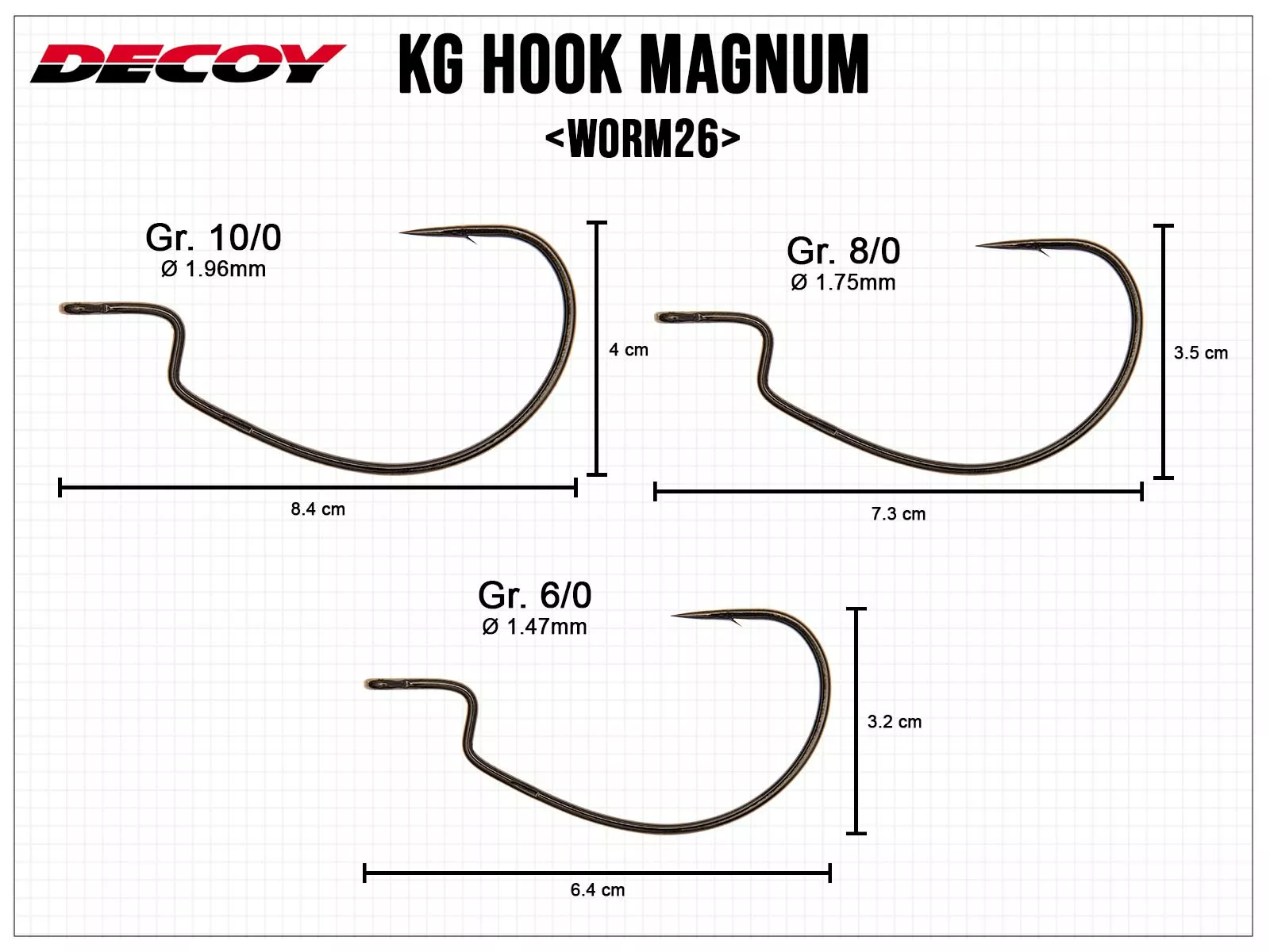 Die DECOY Kg Hook Magnum26 Widegap-Haken sind optimal für große Swimbaits und Softjerks geeignet. Die stabile Ausführung und der extragroße Hakenbogen machen sie zur ersten Wahl bei der gezielten Großhecht- und Wels-Angelei!